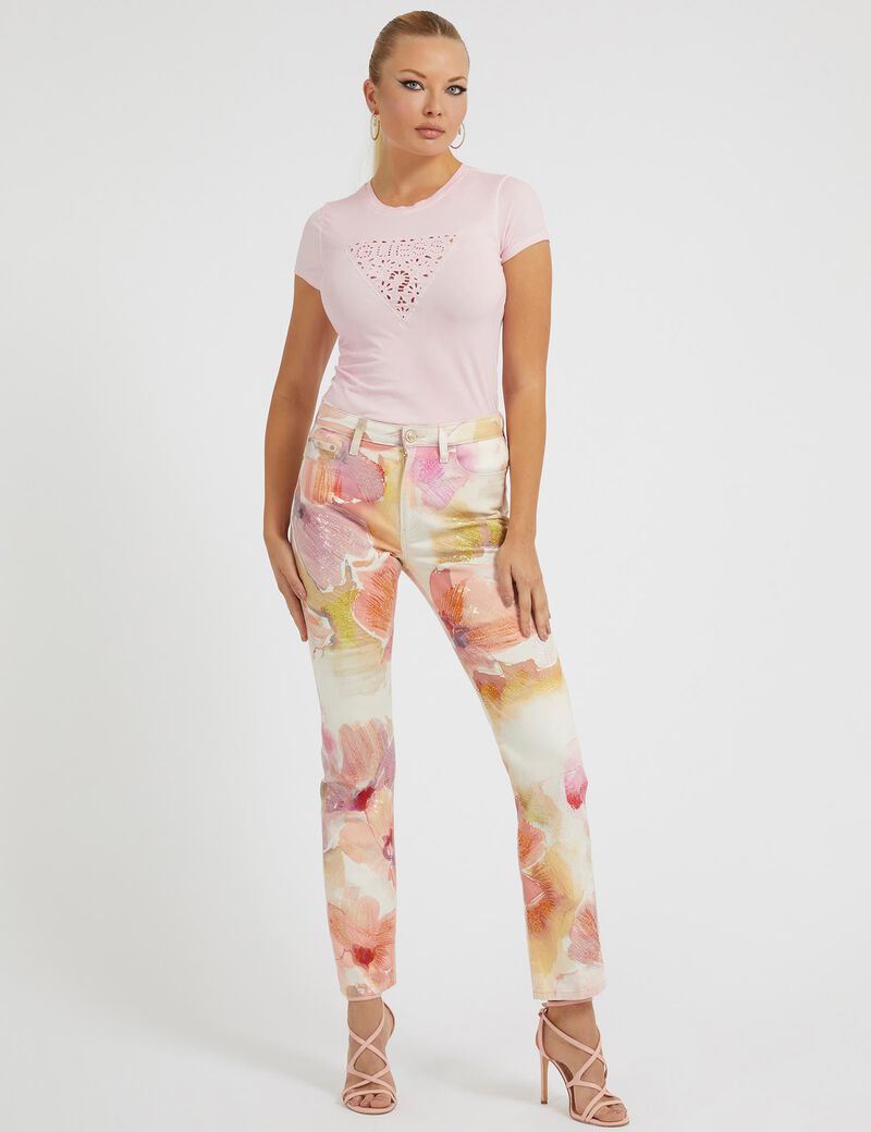 تيشيرت مصنوع من مزيج من القطن. ياقة بفتحة ضيقة. أكمام قصيرة. قصة ضيقة. نوع النسيج: جيرسي. الزخرفات: شعار مطرز من الأمام. الصورة تُظهر مقاسًا صغيرًا. الطول الإجمالي: 63,5 سم/ 25 بوصة. مطابق للمقاس الحقيقي. النسيج الخارجي (الرئيسي): 95% قطن، 5% إيلاستان. طريقة الغسل: غسل على 30 درجة مئوية حدًّا أقصى. يحتوي هذا المنتج على ألياف قطنية عضوية.