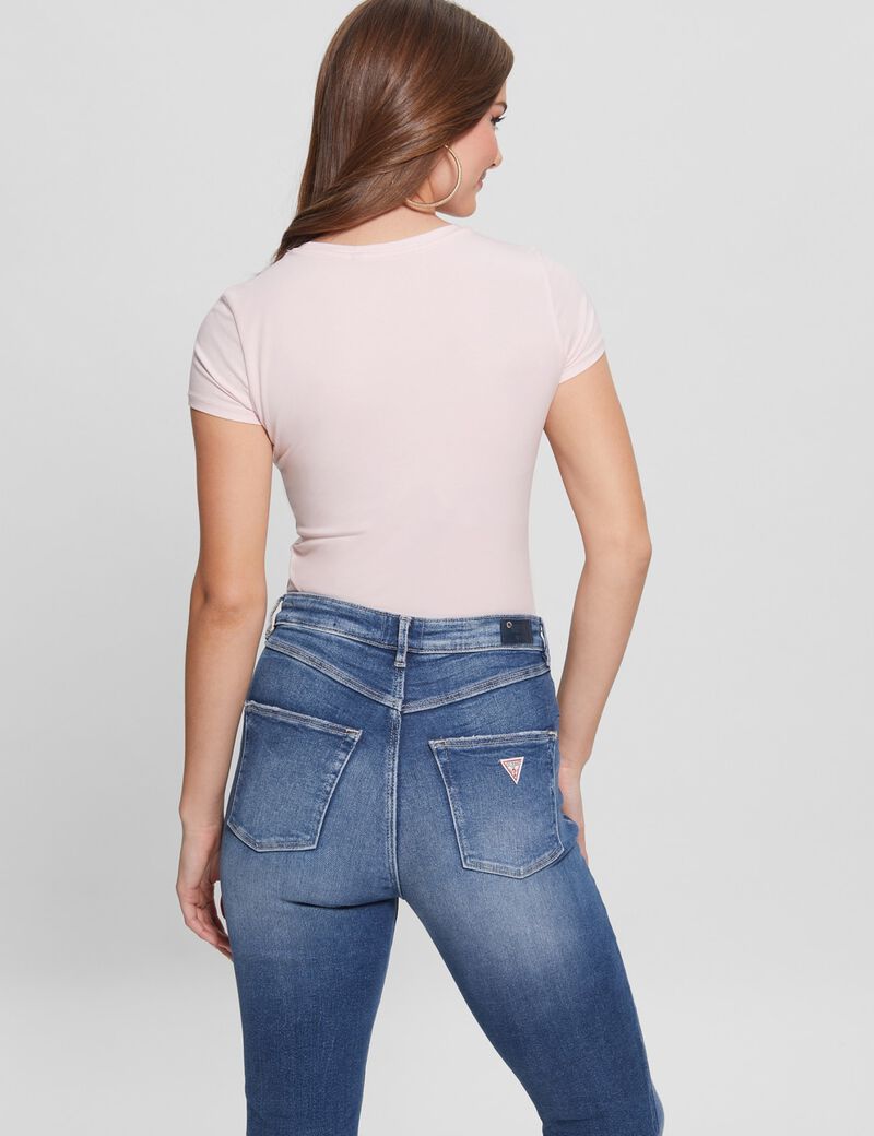 يحتوي هذا المنتج على ألياف القطن العضوي. تي شيرت من مزيج القطن. رقبة مستديرة. أكمام قصيرة. جسد مثالي. نوع القماش: جيرسي. تفاصيل القماش: شعار مثلث من أحجار الراين. تظهر الصورة المقاس S. الطول الإجمالي: 22.5 بوصة. / 57,2 سم. حجم مناسب . الهيكل الخارجي (النسيج الرئيسي): 95% قطن، 5% إيلاستان؛ ملصق الغسيل: يُغسل بدرجة حرارة 30 درجة مئوية كحد أقصى.