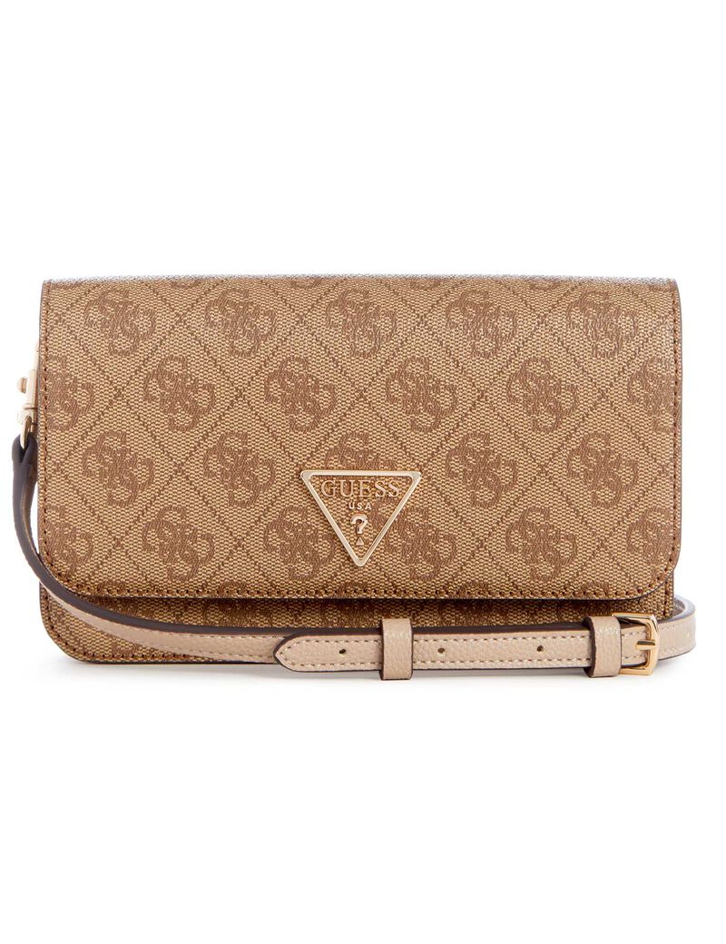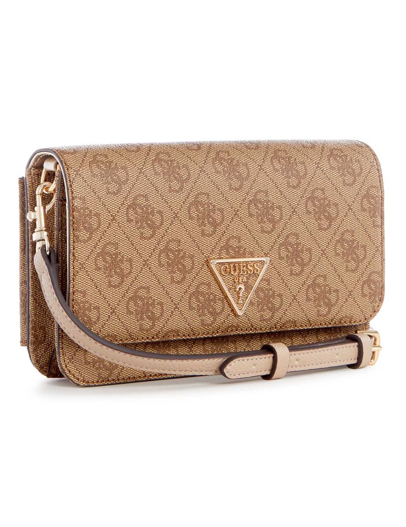 - A modern faux leather organizer features a triangle logo, Quattro G pattern, and clasp closure with a removable strap.