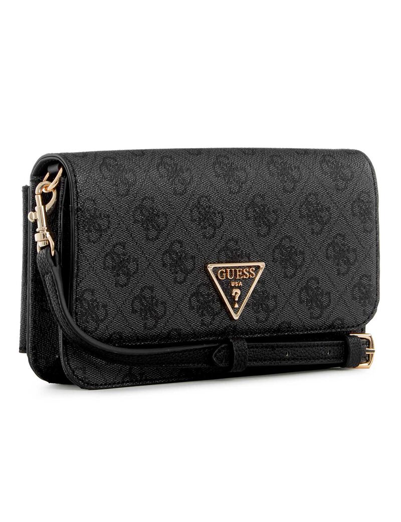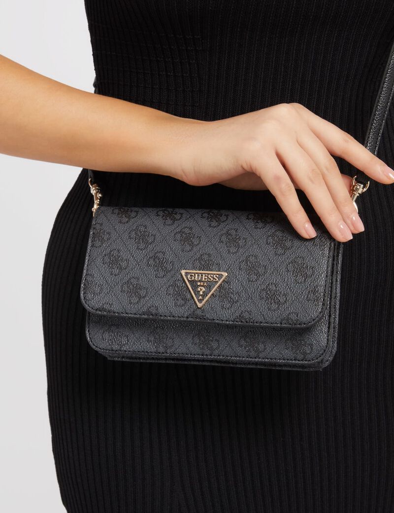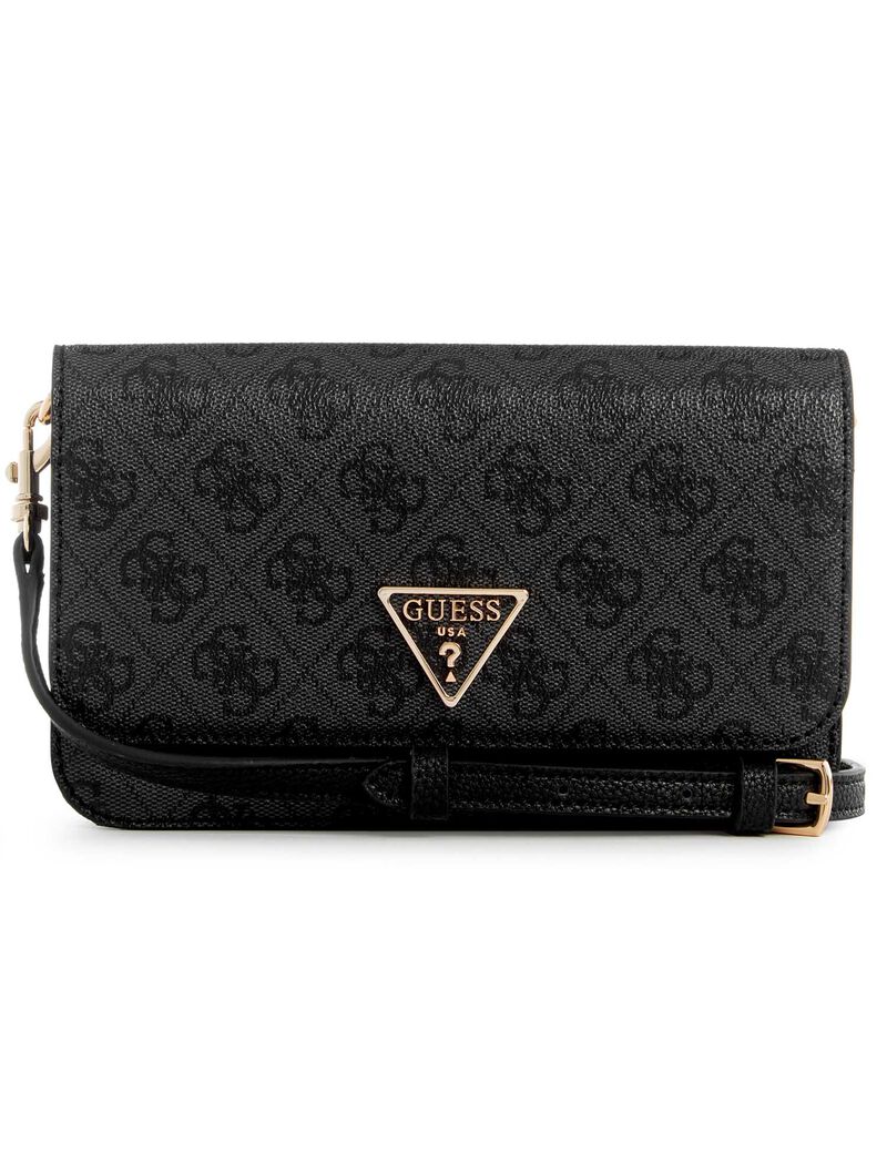 - A modern faux leather organizer features a triangle logo, Quattro G pattern, and clasp closure with a removable strap.
