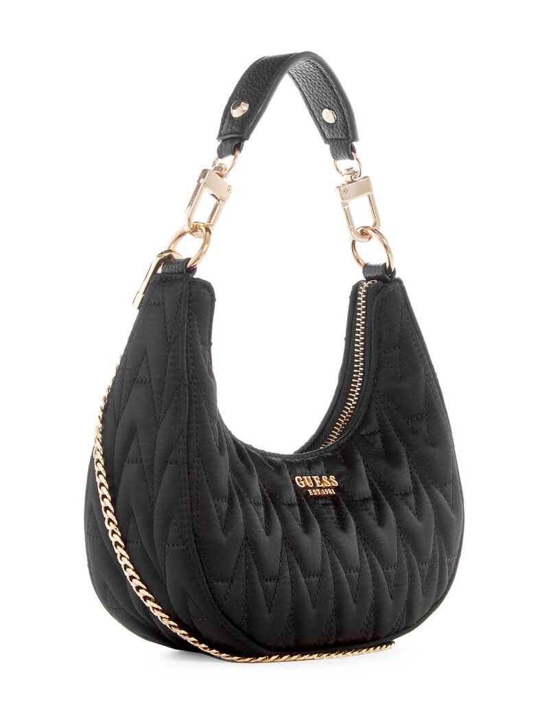 - The top-handle mini hobo bag is a stunning addition to your collection. Crafted of quilted satin, featuring a top-zip closing, a front brand logo, and a removable chain crossbody strap, and has a crescent silhouette.