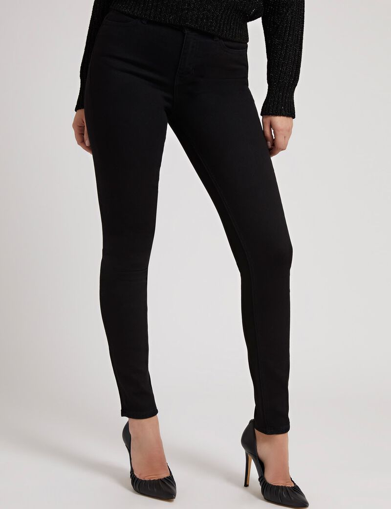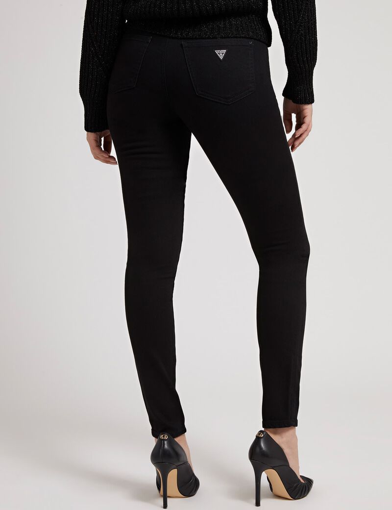 - This item contains recycled cotton fibers. Cotton blend Denim Pant. Skinny fit. High waist, Skinny leg and bottom. Classic 5-pockets. Front Zip and button fastening. TREATMENTS: Black wash. FABRIC DETAILS: Super stretch. FABRIC TYPE: Denim. Back logo. Picture shows size 27. Drop 1: inseam length 31 Inch. / 78,7 cm